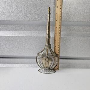 Vintage Moroccan Perfume Bottle Sprinkler Handmade Embossed Metal & Glass Work Overlay