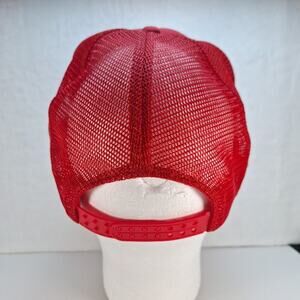 This vintage Catalina trucker hat is a must-have for any USA or 90s themed outfit. It features a solid red color with a mesh back and adjustable snapback closure for a comfortable fit. The foam front and rope details add a touch of retro style, perfect for casual occasions in the summer, fall, or spring.