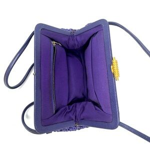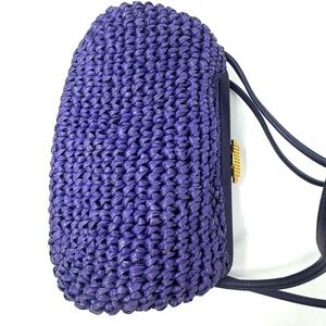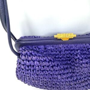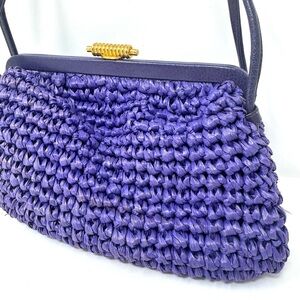 Add a unique vintage touch to your collection with this stunning MM Morris Moskowitz crochet straw handbag. Beautifully crafted in a rich purple hue, this rare piece exudes timeless charm with its woven straw design, structured leather trim, and elegant gold-tone clasp closure. Perfect for evening outings, summer events, or collectors of vintage handbags!