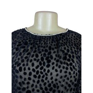 Vintage Mort Schrader Long Sleeve Black Polka Dot Dress With Rhinestone Neckline