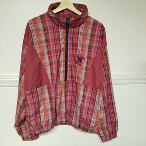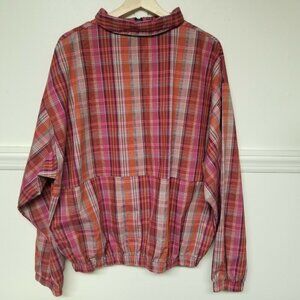 Vintage Morton Knight Plaid Golf Pullover Women's UK18. Half zip pullover with side pockets. Front patch: Old Course, St. Andrews. Embroidery on left arm: Morton Knight. Red, pink, orange, white. Very good vintage condition. Size is UK 18. Approximately 27" pit to pit, 25.5" long.