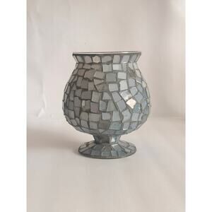 Unique silvery grey older vintage Mosaic Glass Pedestal Vase Candle Holder 8” tall- 6 inch diameter- in nice condition-