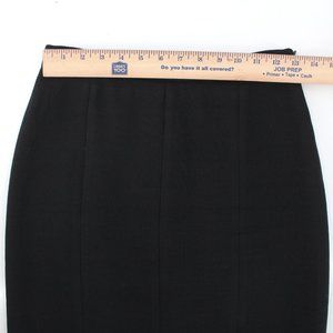 Classic black pencil wiggle skirt in mid-weight 100% wool weave. Tailored with Princess seams front and back. Side zipper. Fully lined.