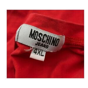 Rare vintage Moschino Jeans red short sleeve tee, women’s 4XL, featuring an iconic Y2K rhinestone peacock feather motif. Lightweight 95% cotton. This early 2000s streetwear gem is bold, playful, and made to stand out. Great oversized or fitted. Style with low-rise jeans, mini skirts, or wide-leg pants. Perfect for festivals, concerts, or nostalgic Y2K outfits.