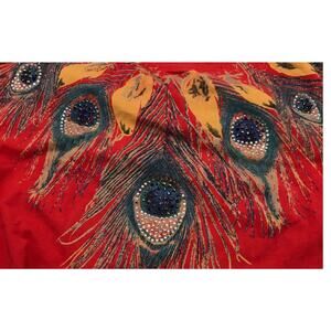 Vintage Moschino Jeans Red Peacock Feather Tee Y2K 4XL Statement Top