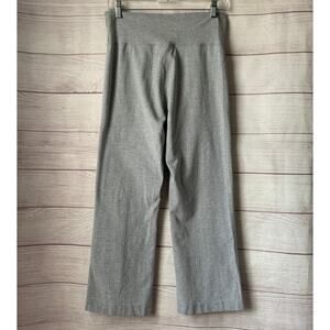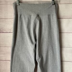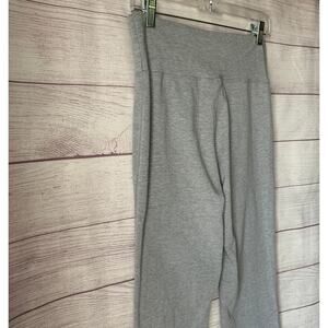 Vintage light gray stretch capri pants by Mossimo. These pants are high waisted with a wider band that can be worn up or folded down. They are pre-owned with very minimal, sporadic, pills and one very slightly pulled side seam, but are otherwise in great condition.