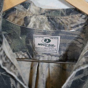 Vintage Mossy Oak Camo Button Up Made in U.S.A 100% cotton Body width: 25 inches Body length: 28 inches