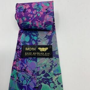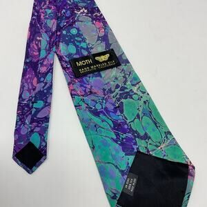 Vintage Moth Hand Marbled 100% Silk Men Tie Abstract Necktie Designer Classic