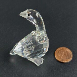 Add a touch of elegance and charm to your collection with this vintage Swarovski Mother Goose from the Barnyard Friends series. Crafted with expert precision in clear crystal, this graceful figure captures the delicate beauty and character of the beloved mother goose.