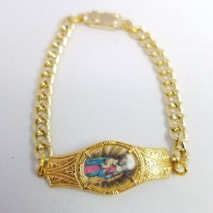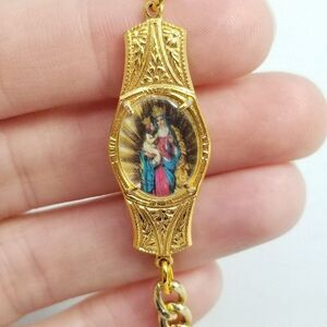 Vintage Mother Mary and Baby Jesus Religious Saint Bracelet, Gold Tone, Estate