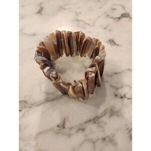 This vintage stretch bracelet features mother of pearl abalone shell. Its earthy and iridescent tones exude elegance, offering a sophisticated accessory for any ensemble. The bracelet's elastic band ensures a comfortable fit for a variety of wrist sizes, making it both stylish and practical.