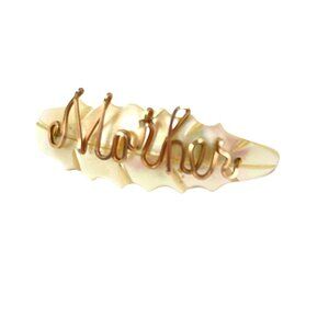 This vintage brooch, crafted from stunning mother of pearl with elegant gold wire spelling "Mother," adds a touch of classic charm to any ensemble. A thoughtful piece that beautifully combines delicate materials with sentimental value, making it a cherished keepsake for years to come.