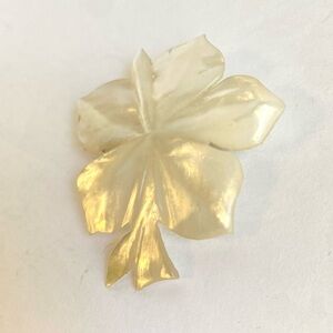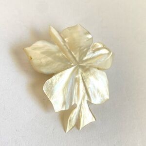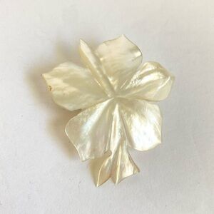 Vintage Mother Of Pearl Plumeria Brooch Hawaiian Flower MOP Coastal Beach Resort