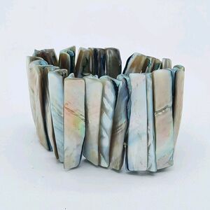 Vintage Mother of Pearl Abalone Wide Shell Stretch Bracelet Cream Brown Green