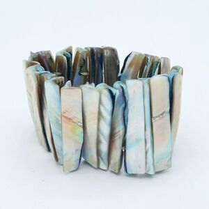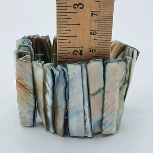 Vintage Mother of Pearl Shell Stretch Bracelet Abalone Cream Brown Green
