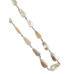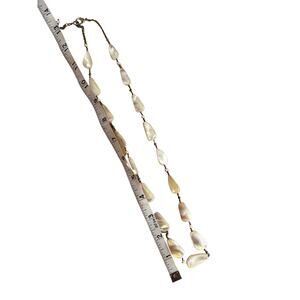Vintage pearl and mother of pearl beaded necklace strand. Adjustable in length. Natural materials with a base metal chain (unknown materials, but not sterling or nickel silver).