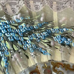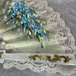 Vintage Mother of Pearl Lace Hand Painted Fan French