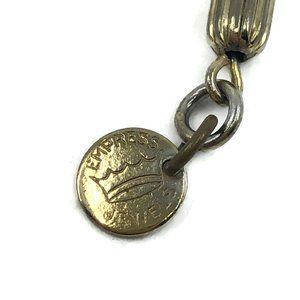 A vintage bracelet that consists of gold-tone links interspersed with three mother of pearl discs. There is a hang tag that reads Empress Jewels with a crown.