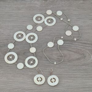 Vintage Mother of Pearl Necklace 925 Silver Pierced Dangle Earrings Set