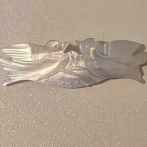 Vintage mother of pearl brooch. The brooch features two carved peace doves facing each other.