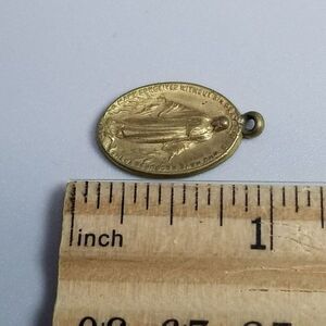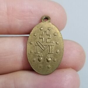 Vintage Mother Mary Pray For Us Gold Tone Oval Pendant Charm Medallion