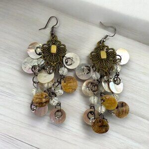 Vintage mother-of-pearl cascade earrings. They are about 3 1/2" tall. Sure to make a statement where ever you go. Casual, date night, or girls night out. Pre-owned, good condition. Gently used.