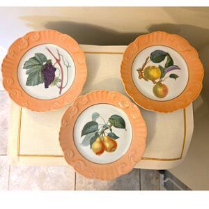 Vintage Mottahedeh Summer Fruit Dessert Plates Set of 3 w/Scalloped Rims