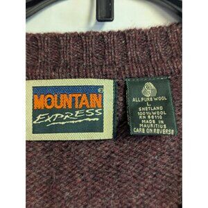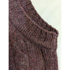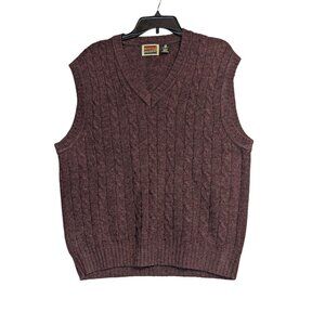 Vintage Mountain Express Mens Wool Cable Knit Sleeveless Sweater Vest Burgundy V