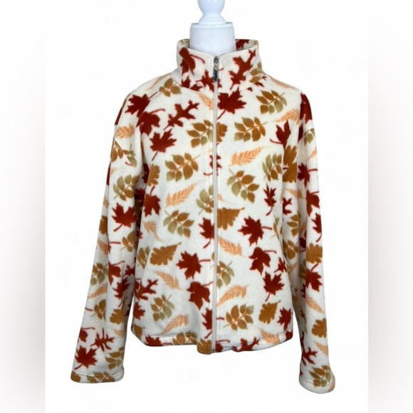 Vintage Mountain Lake autumn leaf print fleece zip up sweater