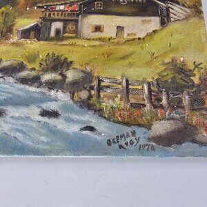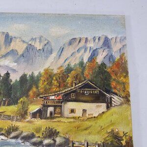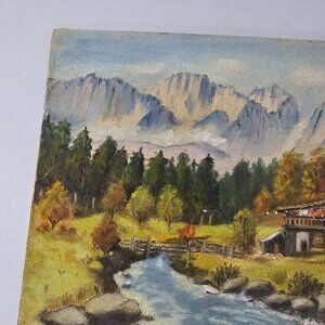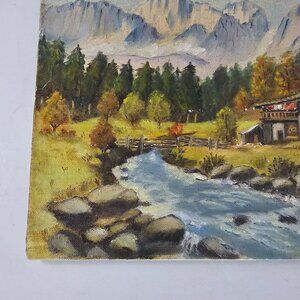 Vintage Mountain Landscape Oil Painting Signed Original Art 1976 FLAWS