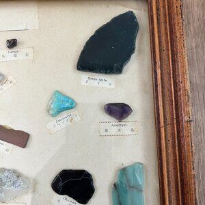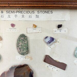 This is such a fun vintage find. This is an old educational set of rocks, gemstones, and minerals. I took it to a local rock and gem store in Asheville NC and they weren't entirely sure the date on this one but estimated it to be circa 1950-70s. Based on the rocks included they estimated $300+ value. I just picked it up because my son adores rocks and it was such a cool vintage piece. He is older now and hopefully this will find a good home. If you have any questions, please ask! Stones have english and Chinese labels.