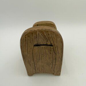 This vintage ceramic coin bank features a cute mouse design with the title "Not a Creature Was Stirring" inscribed on the bank. Made in Taiwan, this original piece is perfect for collectors of unique and whimsical items. The detailed craftsmanship and nostalgic charm make it a charming addition to any collection or a fun way to save up your spare change.