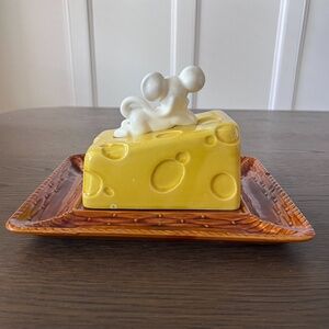 Vintage Mouse On A Cheese Slice Covered Dish Tray Plate with Lid. 3D. Made in Japan. Perfect for the Holidays/Christmas/Thanksgiving. Excellent unused condition, tiny chip on exterior plate which is barely noticeable- see photos.