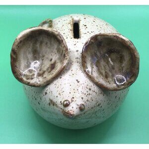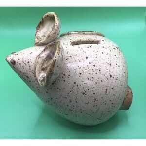 Vintage Mouse Pottery Coin Bank. No defects noted, handmade supper cute. 7.5 inches length, 6 wide.