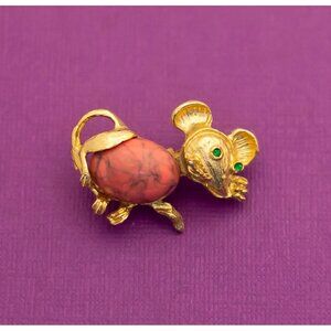 Vintage Mouse Stone Gold Tone Brooch - Q4