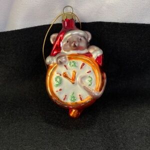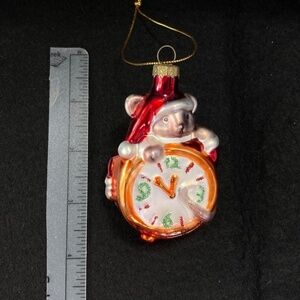 Vintage Mouse and clock glass ornament in EUC vibrant colors