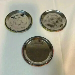 Vintage Metal Round Movie Pins: Two from the Land Before Time Movie from 1988 . One pin from Once Upon a Forest Movies from 1993. All in good condition but do have some discoloration and wear on the backs. All 3" round in diameter.
