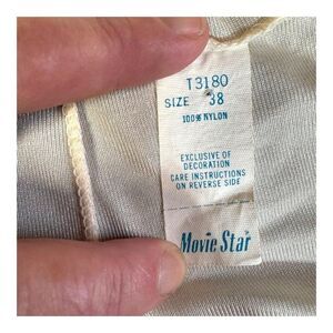 Vintage Movie Star Cream Nylon Lace Trim Slip Dress Size 38 Made In USA READ
