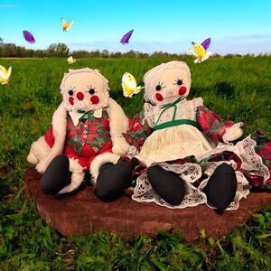 Vintage Mr And Mrs Claus Raggedy Ann Dolls Mrs clause 80s Holiday Decor