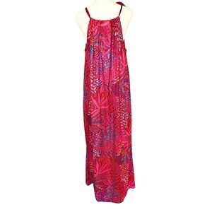 Vintage ‘Mr. B’s of California’ Tropical Pink Maxi Dress with Palm Trees