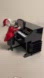 Magical Maestro Mouse by Mr. Christmas. It is an animated musical Christmas decoration featuring a mouse in a red suit playing a baby grand piano.