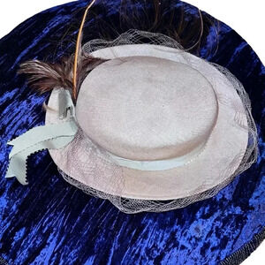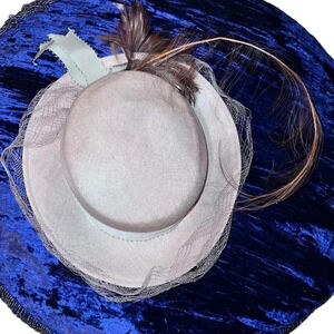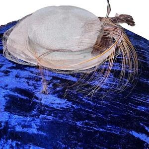 Vintage Mr. John 1950's Kentucky Derby Flapper Hat with Netting Bow and Feathers