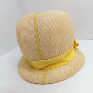 Vintage Mr. John Jr Bubble Hat Straw Yellow Ribbon Tall Mod