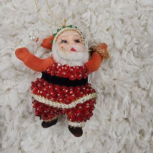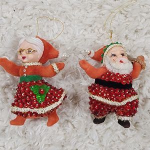 Vintage Mr & Ms Claus Christmas Tree Ornaments Beaded Sequin Felted Figures