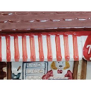 Vintage Mrs Fields Cookie Jar Storefront 3D Ceramic Rubber Seal on Lid 7.75x7x5