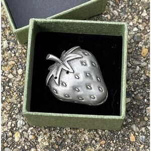 Vintage Ms. Dee Pewter Strawberry Trinket Box Collectible #8-B Signed