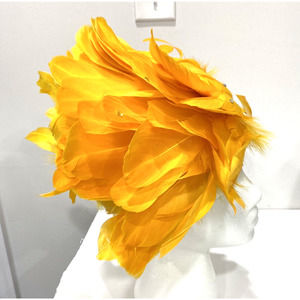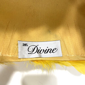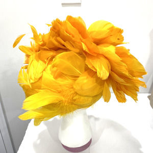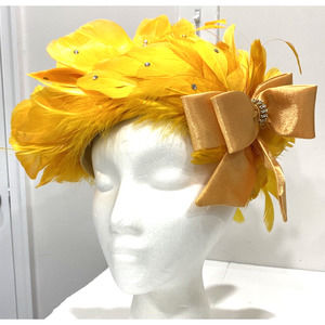 Vintage Ms Devine hat bright yellow feathers satin bow & rhinestones statement