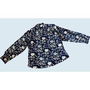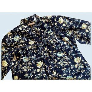 Great vintage button down by Ms. Lee. Navy blue with floral design. Corduroy material. Full button. Western style stitching. Tag is a size 1X. Listed as a size Medium based on measurements (see diagram in photos). 100% cotton. Circa 80s / 90s. Pre-owned in really nice condition!
