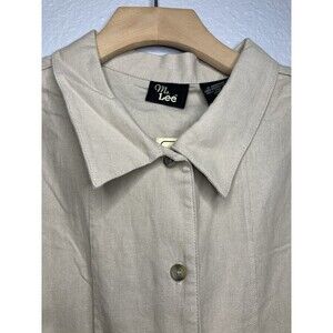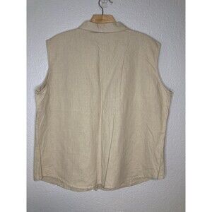 Vintage Ms Lee Linen Blend Tan Sleeveless Button Up Women's XL Minimalist Beachy