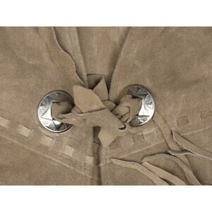 Vintage Ms Pioneer Fringe Western Rodeo Cowboy Cowgirl Southwestern Conch Hippie Boho Festival Suede Leather Vest XS